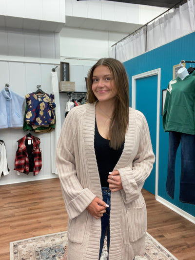 Almond Open Front Knit Cardigan