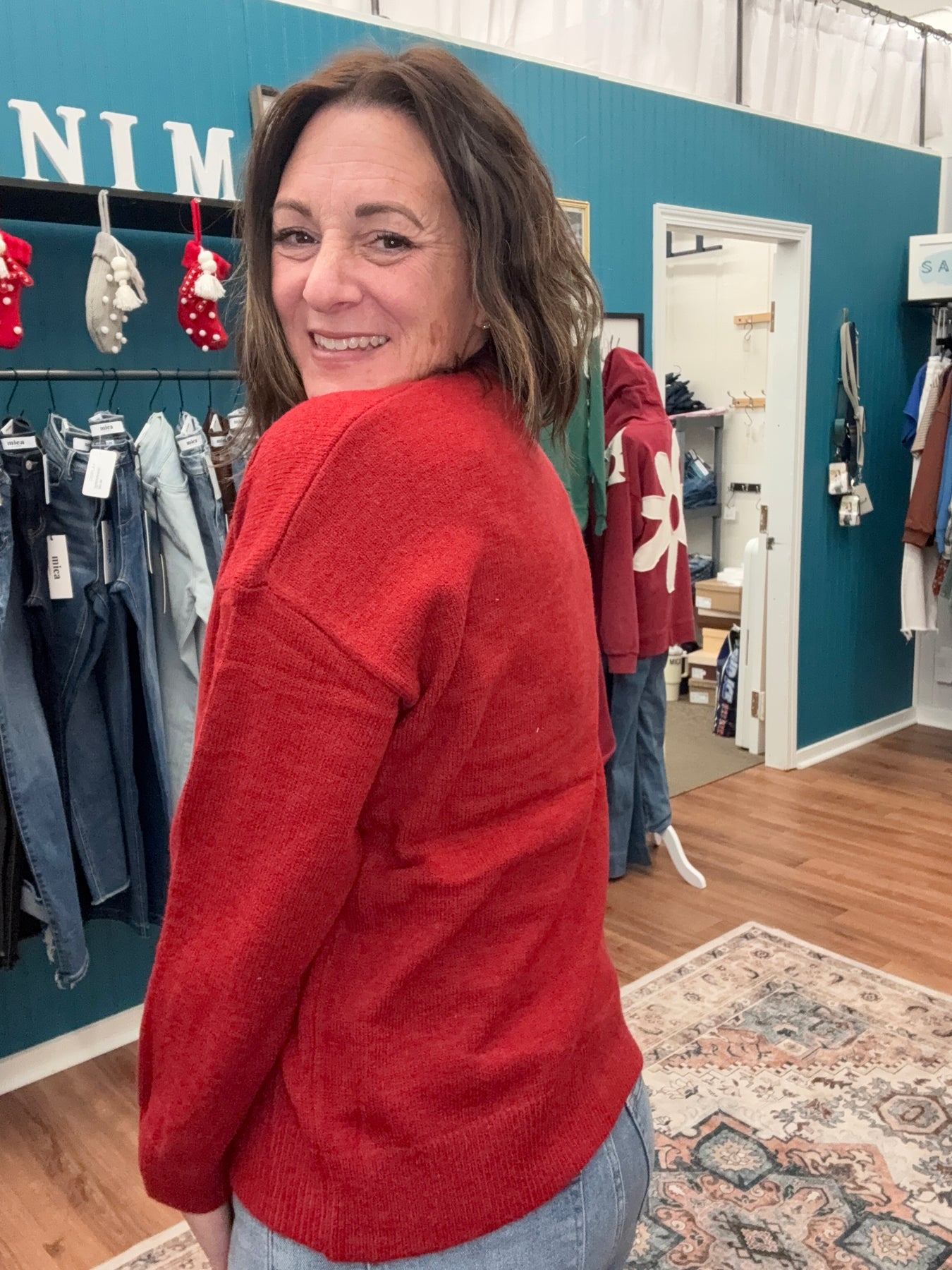 Embrace the holiday season with this festive knit Christmas sweater, expertly crafted for both style and comfort. The design features a vibrant green Christmas tree adorned with red ornaments, complemented by cheerful "Merry and bright" lettering on a rich red knit base. Constructed from soft-touch knit fabric, this sweater delivers exceptional warmth without sacrificing breathability. The ribbed crew neckline, cuffs, and hem provide structural integrity and shape retention through repeated wear and washing. Cut in a relaxed silhouette, it layers effortlessly over long-sleeve tops or pairs beautifully with your favorite winter accessories. Perfect for holiday gatherings, casual outings, or cozy nights in, this sweater combines timeless seasonal appeal with everyday wearability.