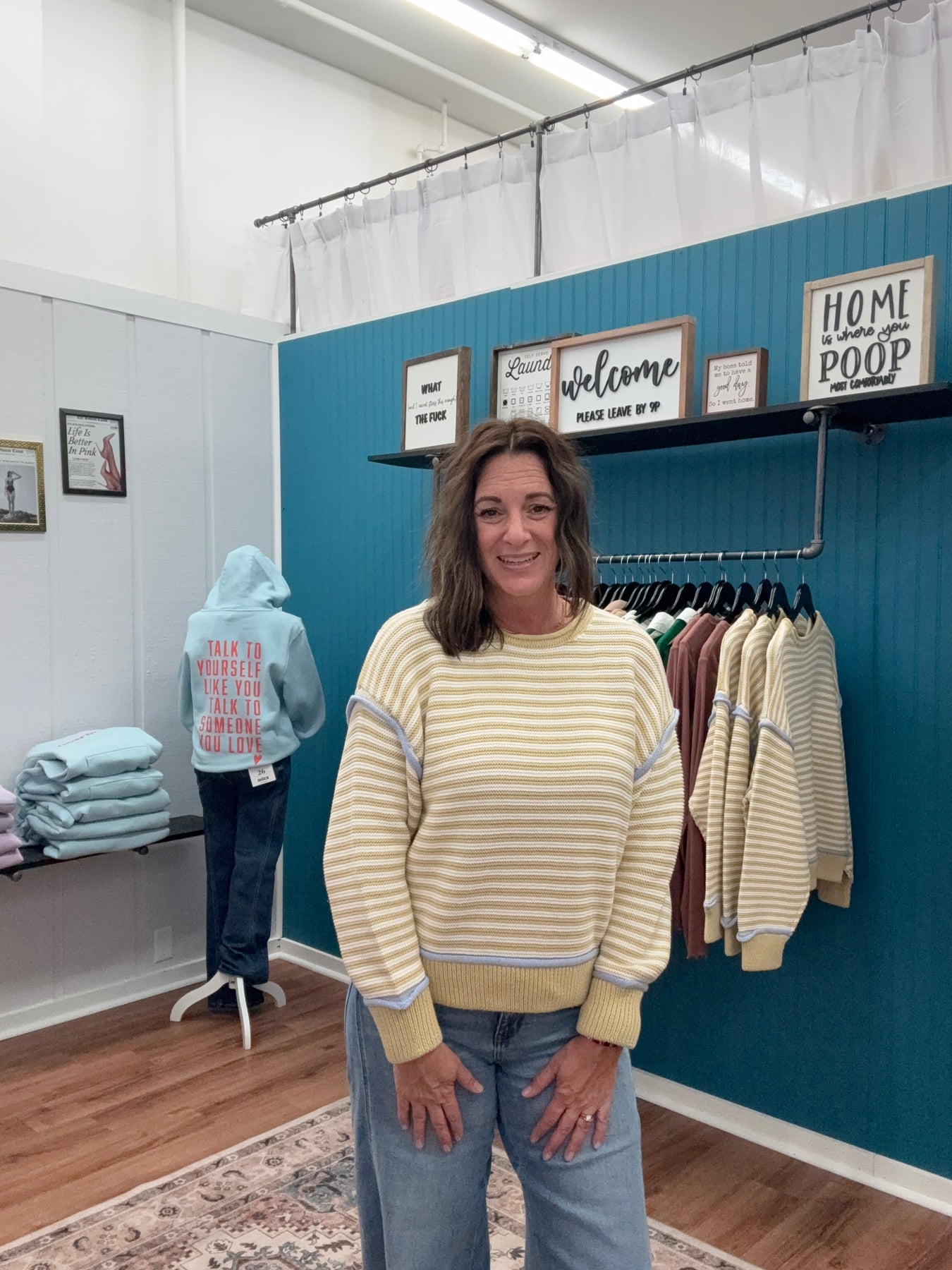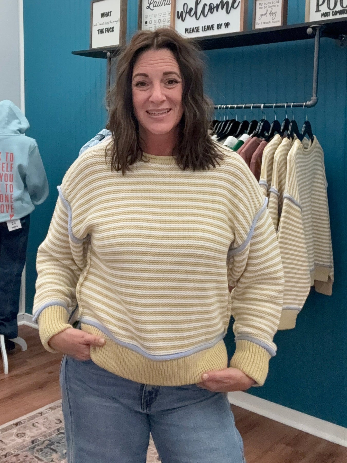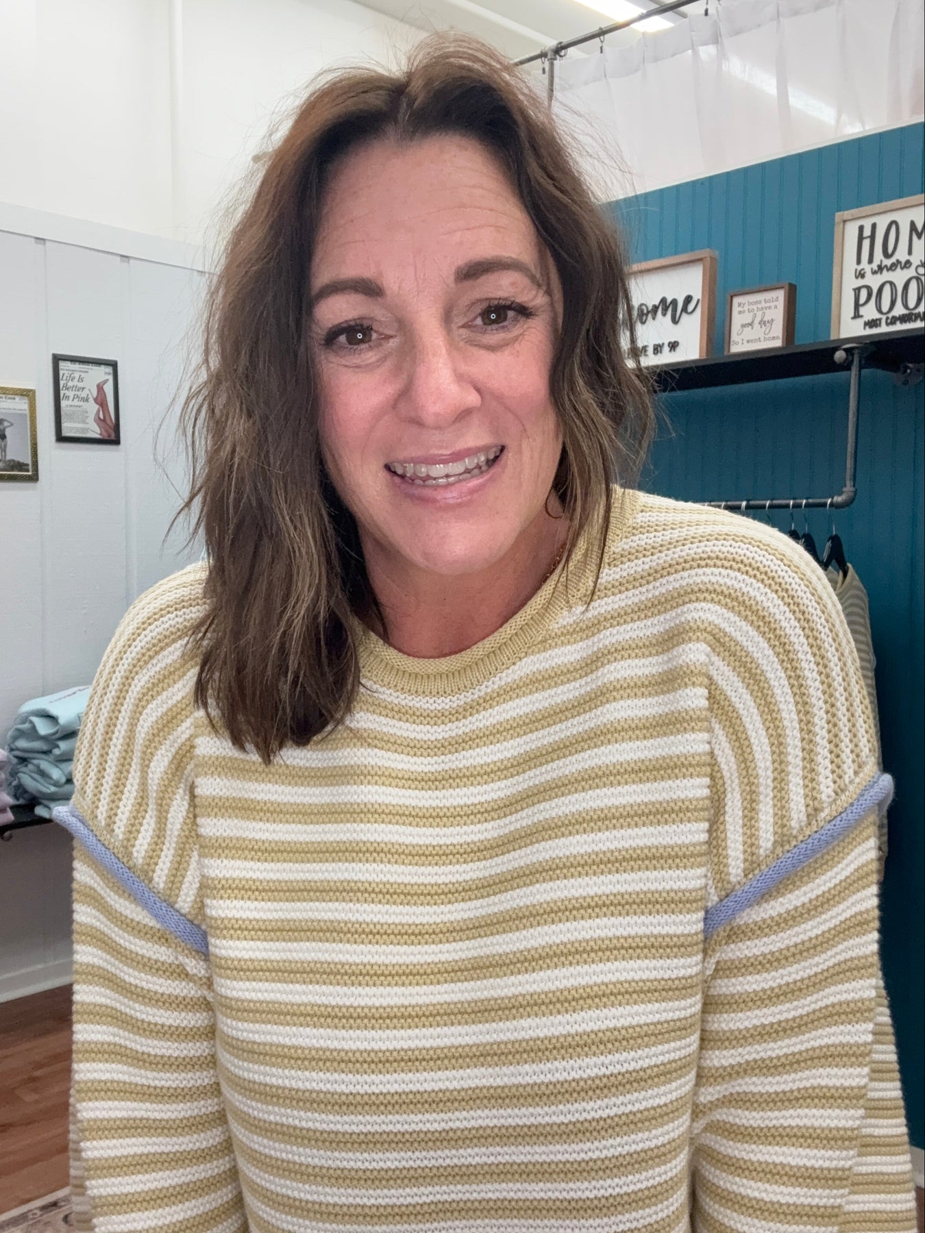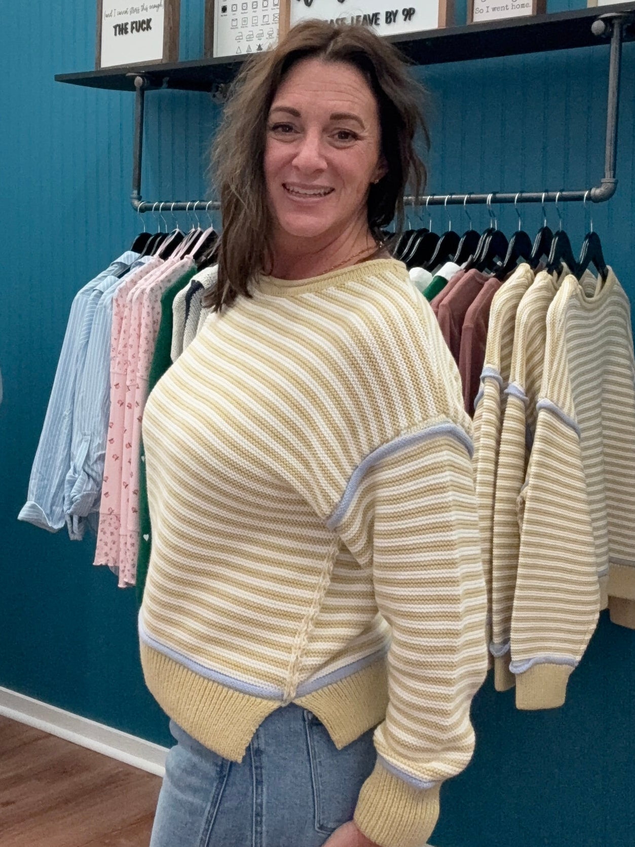 Elevate your everyday wardrobe with this versatile knit sweater, crafted from a comfortable cotton-polyester blend. Featuring classic horizontal stripes and a timeless round neckline, this pullover offers effortless style for any occasion. Long sleeves provide warmth and coverage, while contrast seaming adds a modern touch that sets it apart. Perfect for layering or wearing solo, this pullover transitions seamlessly from casual weekends to relaxed office settings. A wardrobe essential that combines comfort with contemporary design.