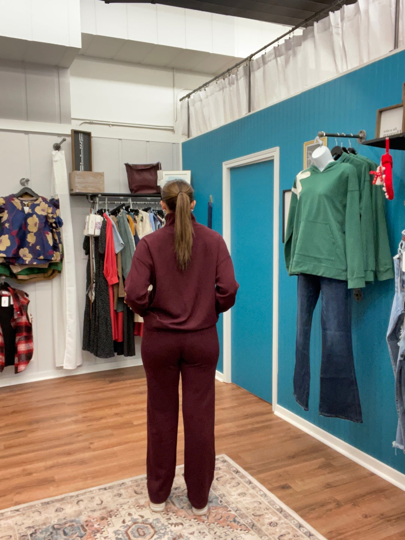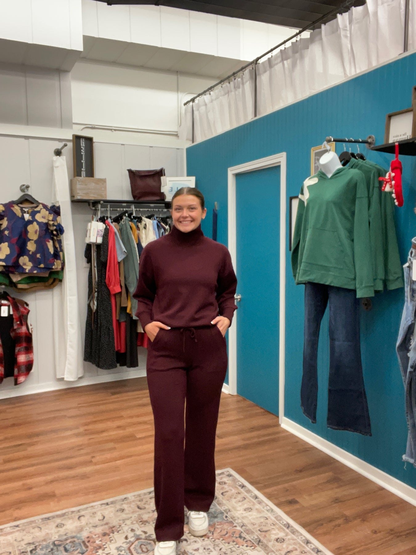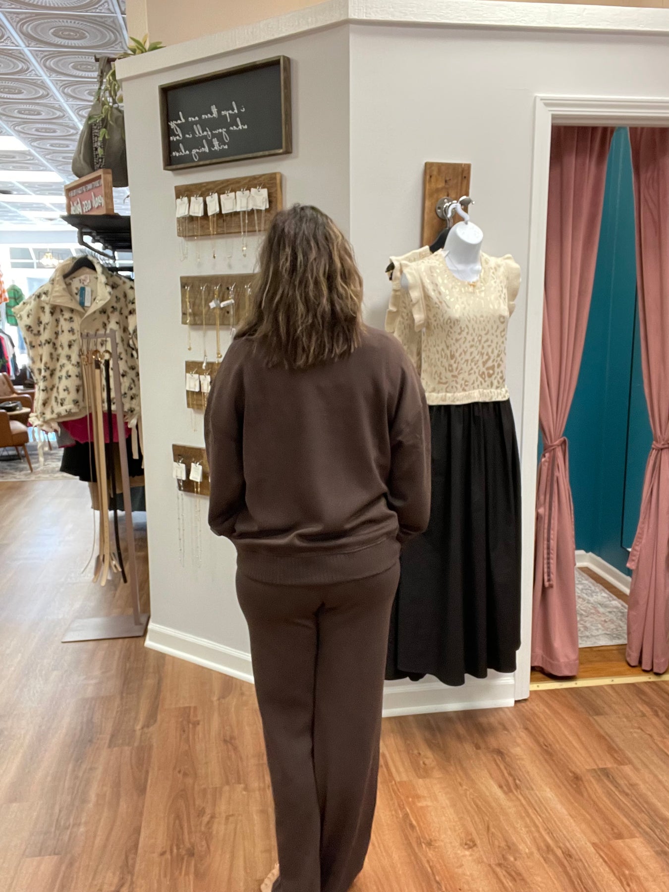 Elevate your wardrobe with this sleek pullover crafted from our signature modal scuba fabric, known for its silky smooth feel, lightweight comfort, and breathability. Designed with a modern mock neck and finished with 4x2 rib contrast detailing on the sleeve cuffs and hemline, it offers a refined yet relaxed look that effortlessly transitions from casual to polished. Perfect for adding subtle texture and clean lines to any outfit, this pullover is a versatile staple you’ll reach for again and again. Bottoms are a relaxed fit with a slightly wide leg for effortless style.