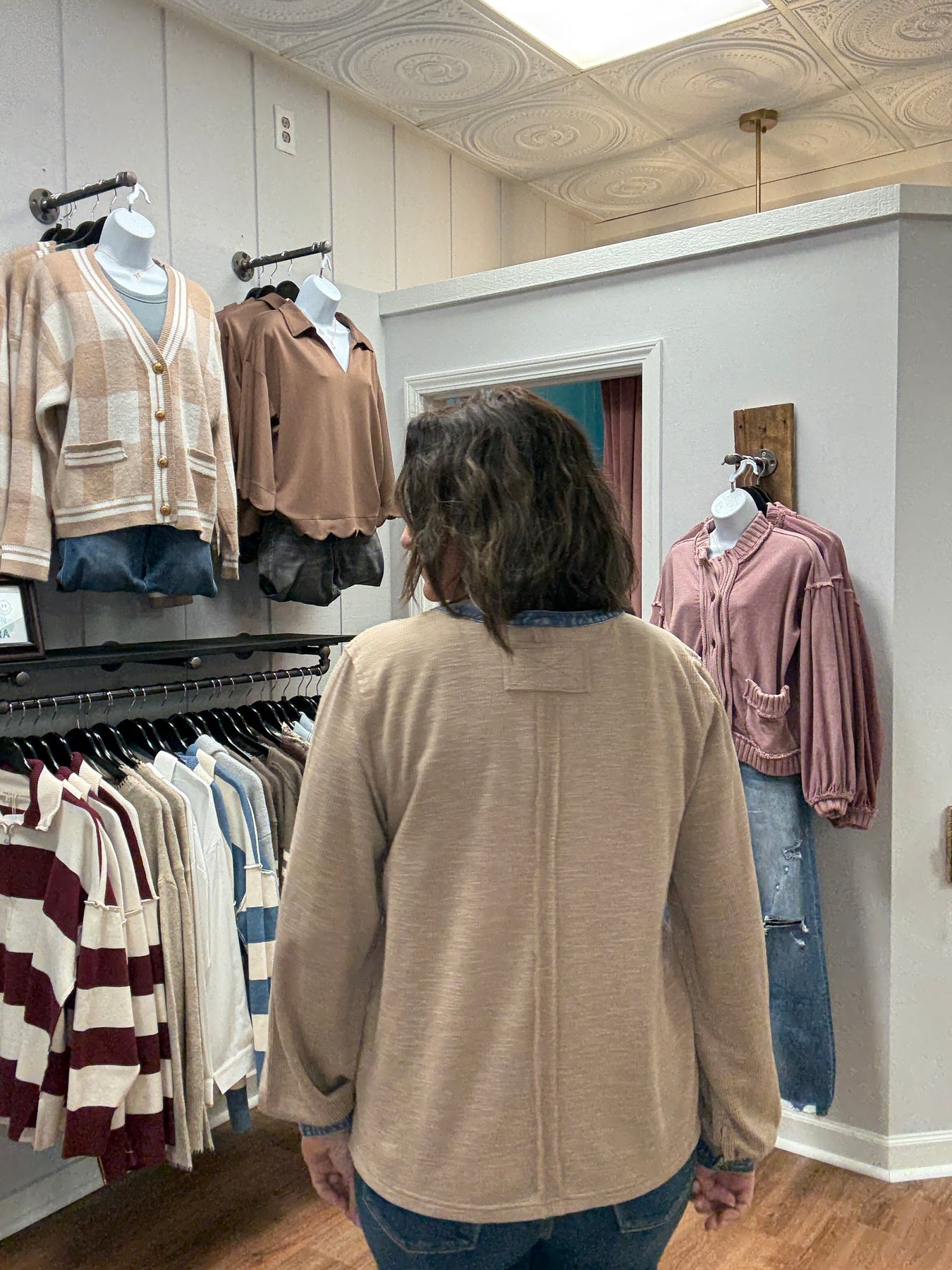 Effortless style meets casual comfort in this ribbed Henley that's anything but basic. The unexpected denim trim detail adds a touch of edge, making it the perfect layering piece for those days when you want to look put-together without trying too hard. Soft, stretchy ribbed fabric moves with you, while the contrasting trim keeps things interesting. Dress it up or down—this versatile essential belongs in every wardrobe.