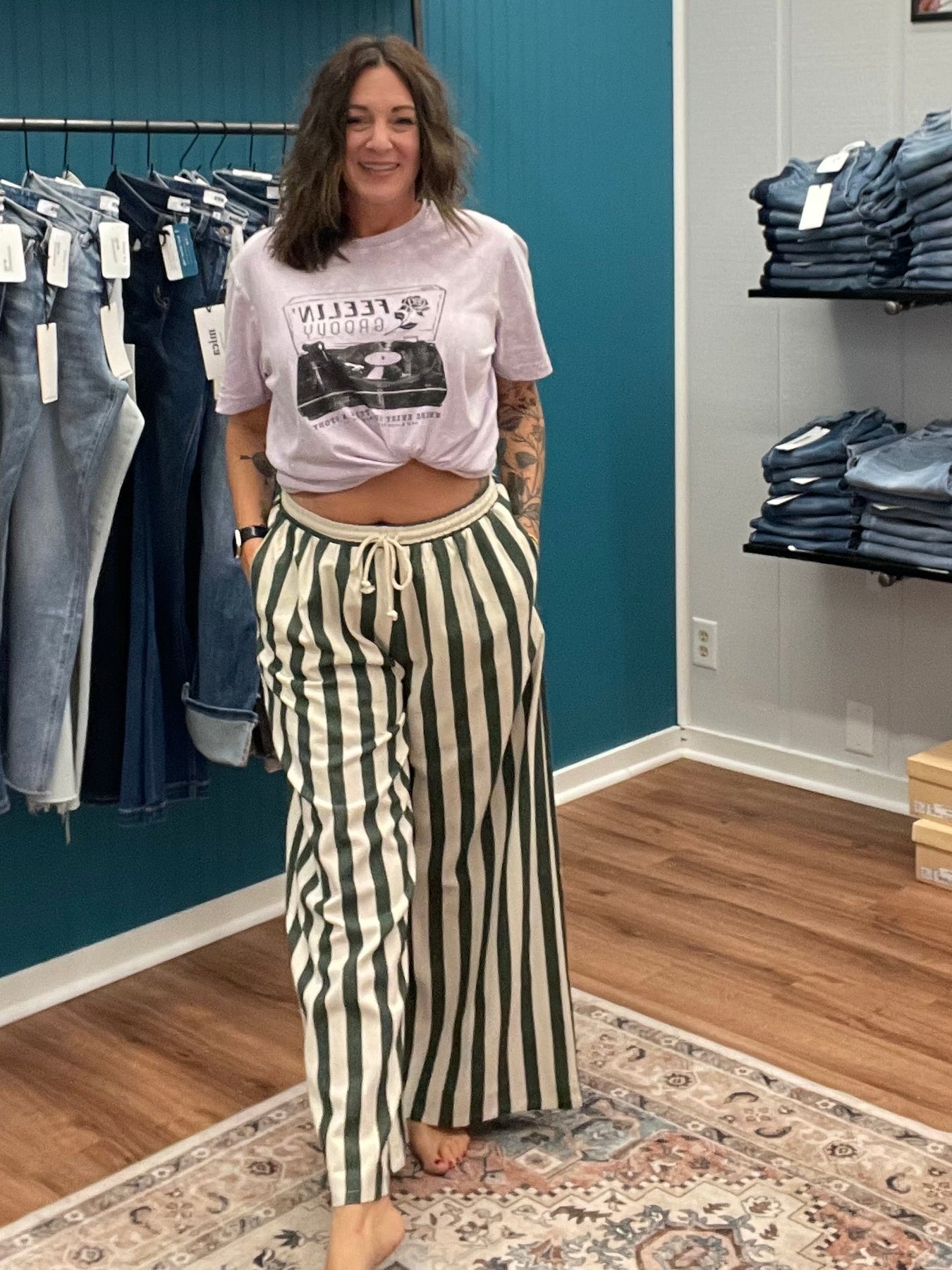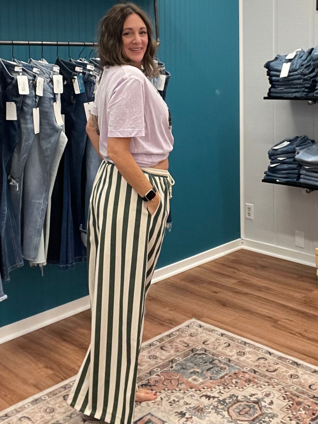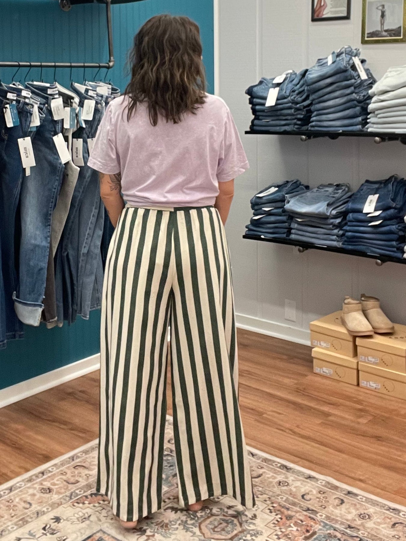 Effortlessly chic, these Forest Striped Soft Wide Leg Pants deliver contemporary style with practical comfort. The linen-viscose blend offers breathability and a luxurious drape, while the elastic waistband with drawstring ensures an adjustable, relaxed fit. Functional side pockets add everyday utility, making these versatile pants ideal for casual outings or elevated resort wear. The modern stripe pattern elevates any wardrobe staple.