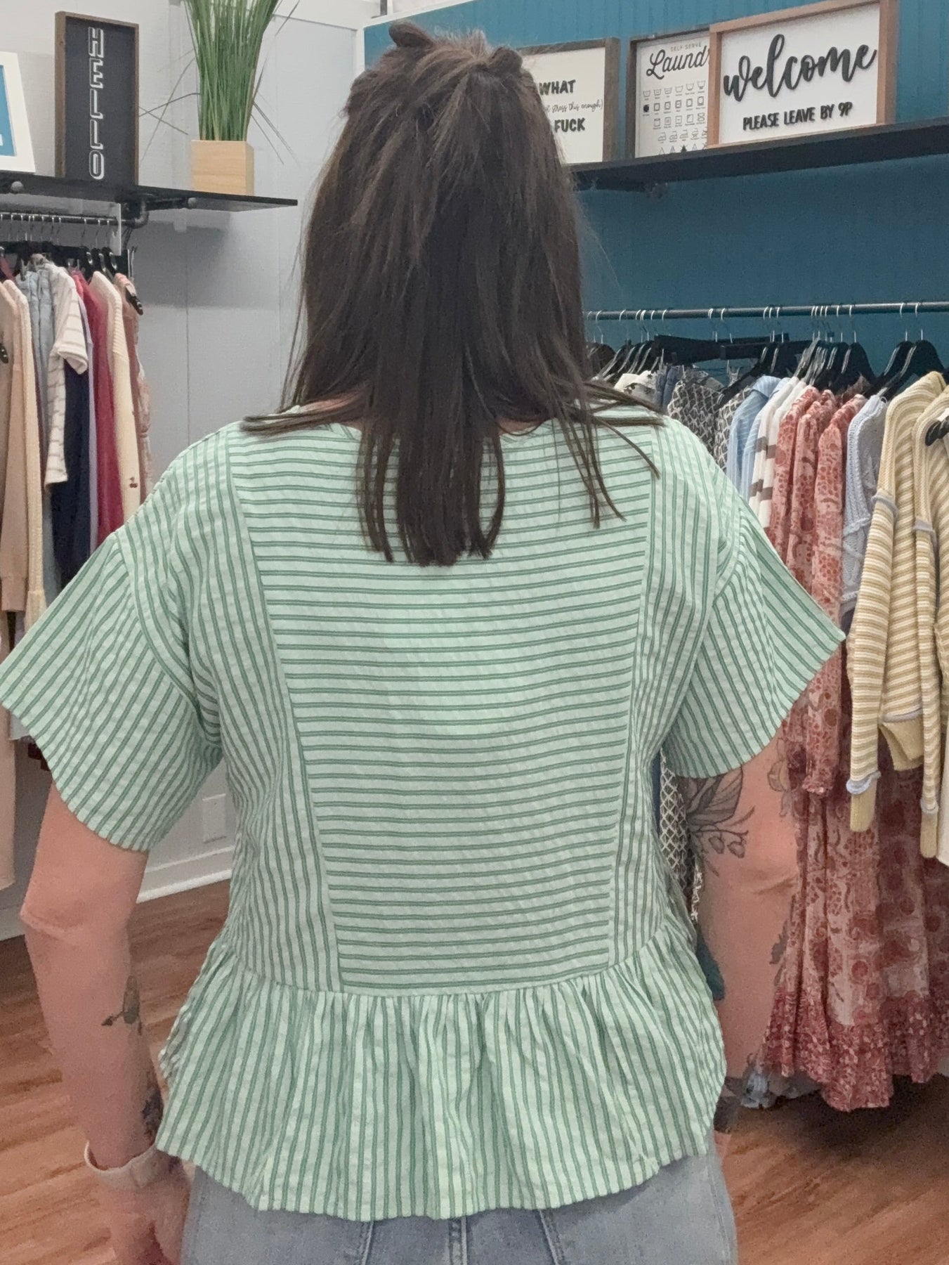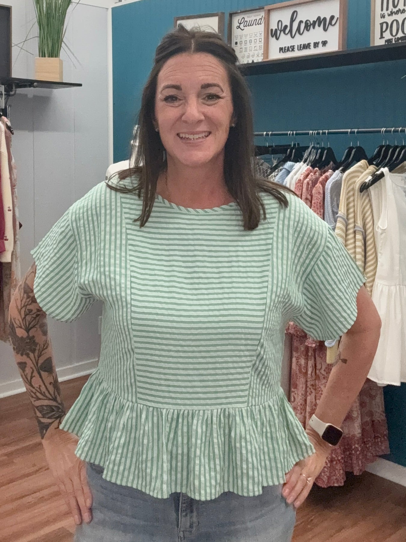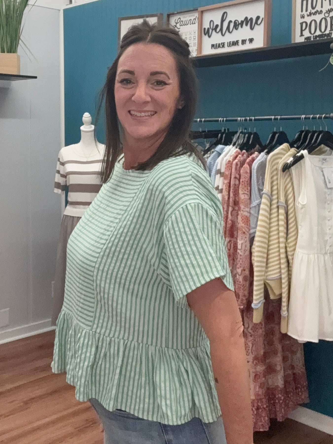 Effortless style meets playful charm in this versatile babydoll stripe peplum blouse. The classic striped pattern pairs beautifully with the flattering peplum waist, creating dimension and movement with every wear. Perfect for dressing up or down, layer it over a camisole for a polished look or wear solo for casual weekend vibes. The relaxed fit and soft fabric make it a go-to piece for any season. Whether you're heading to brunch, the office, or a night out, this blouse adapts to your lifestyle with ease.