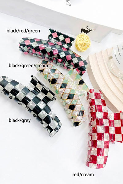 Jumbo acetate checker hair claw clip. Made of acetate.