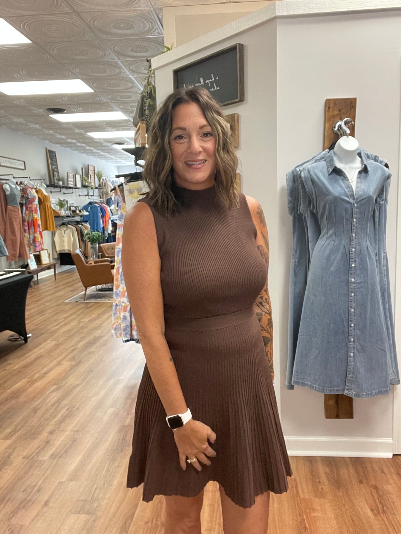 This pleated mock neck sweater mini dress features a comfortable elastic waist that enhances your silhouette while allowing ease of movement. Its soft knit fabric and elegant pleats combine style with comfort, making it a versatile choice for both casual outings and dressier occasions. Embrace effortless chic with this flattering and cozy dress.