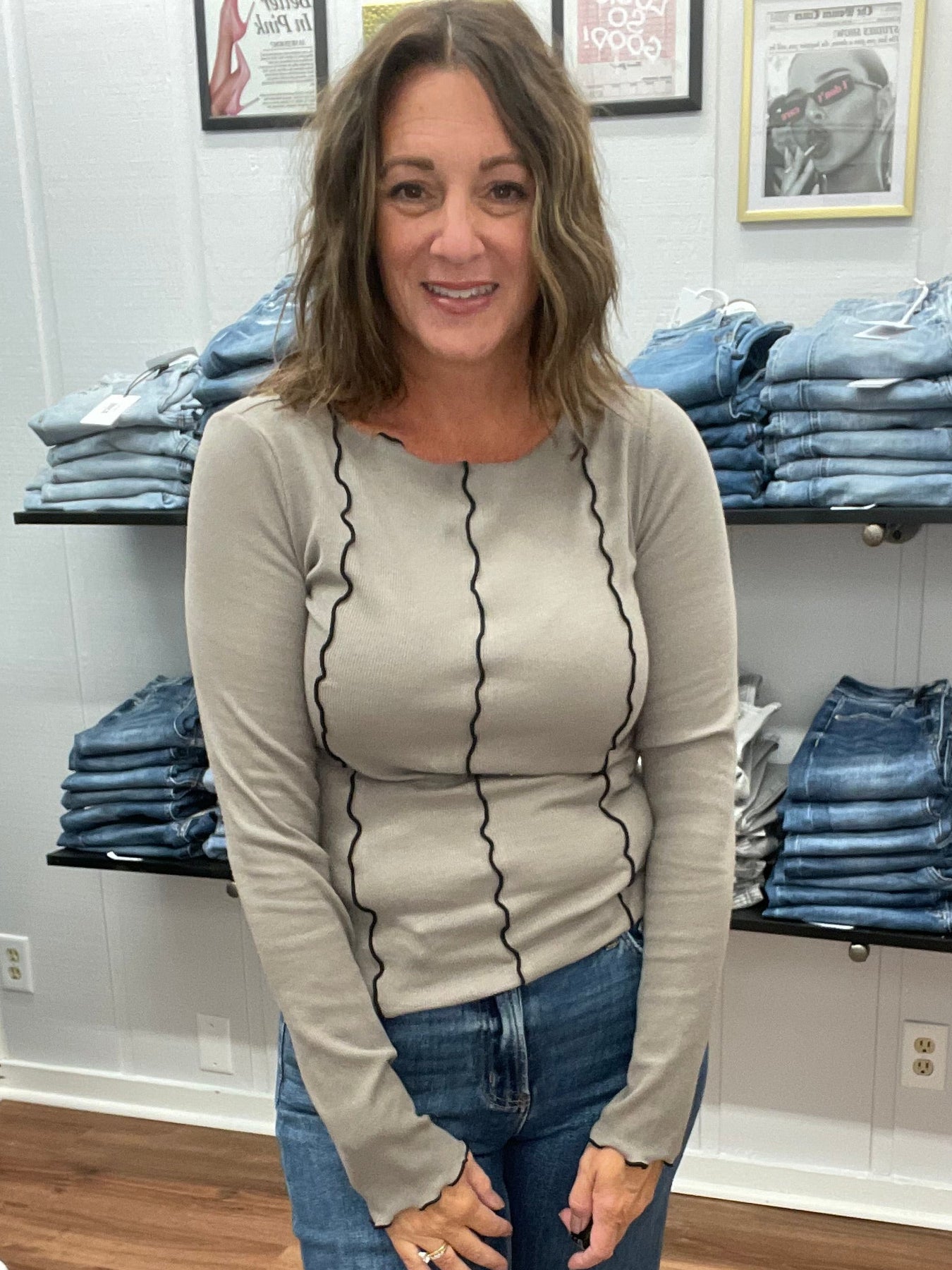 This Seam Detail Ribbed Knit Top features finely ribbed fabric for a comfortable, flexible fit that contours the body without restricting movement. Expertly crafted with detailed seam work, it offers subtle visual interest while maintaining a sleek, minimalist aesthetic. Ideal for layering or wearing alone, this top balances style and function for versatile wardrobe options.